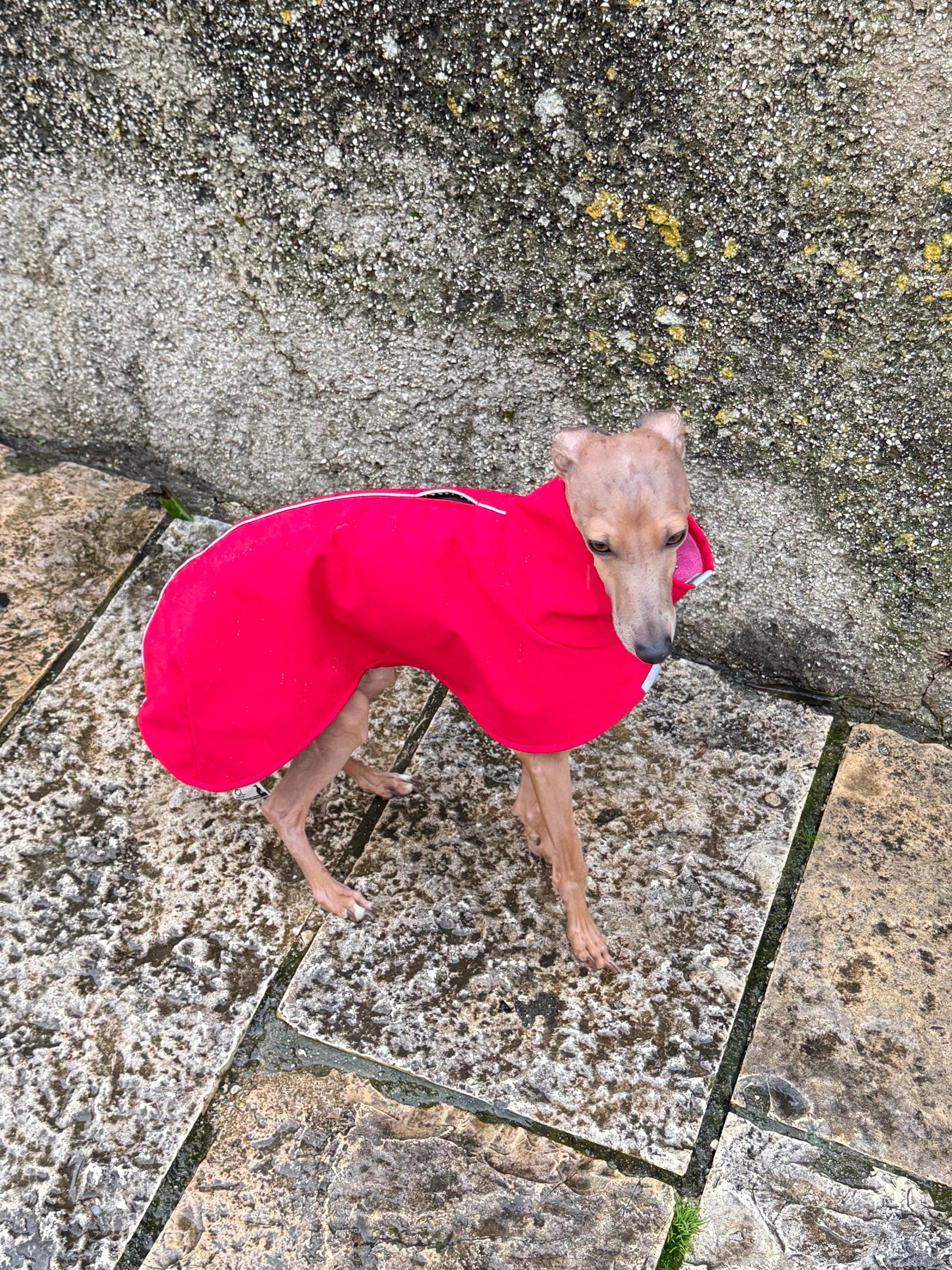 Keep your precious sighthound perfectly protected all year around with our waterproof dog jacket, designed specifically for the unique physique of greyhound and whippet breeds. This custom-tailorable dog coat features a convenient harness opening and reflective elements for safety, while the soft, fleece-lined interior ensures maximum comfort.