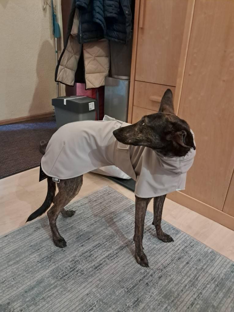 โข Custom-fit softshell raincoat designed specifically for the unique physique of greyhounds