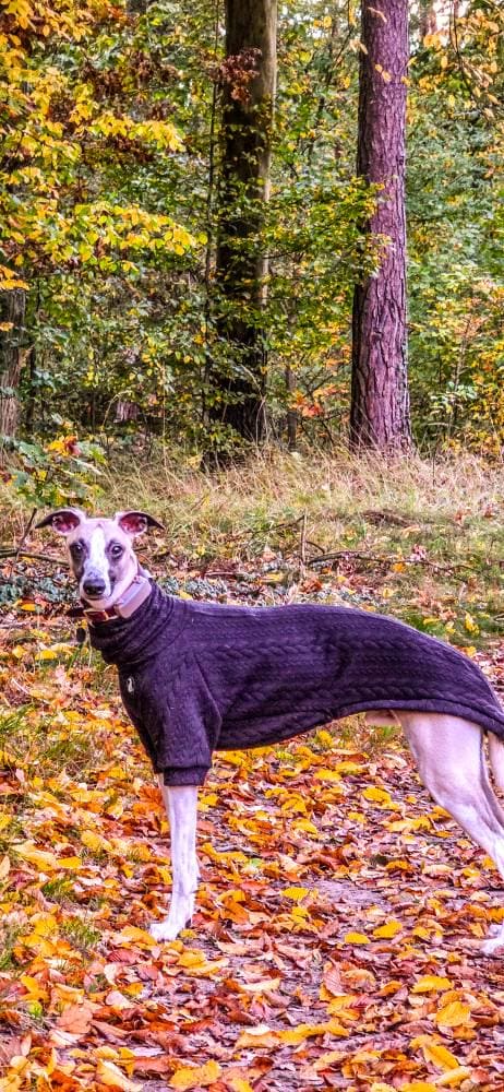โข Soft and stretchy cable knit fabric that ensures a comfortable fit for your whippet, greyhound, or Italian dog
