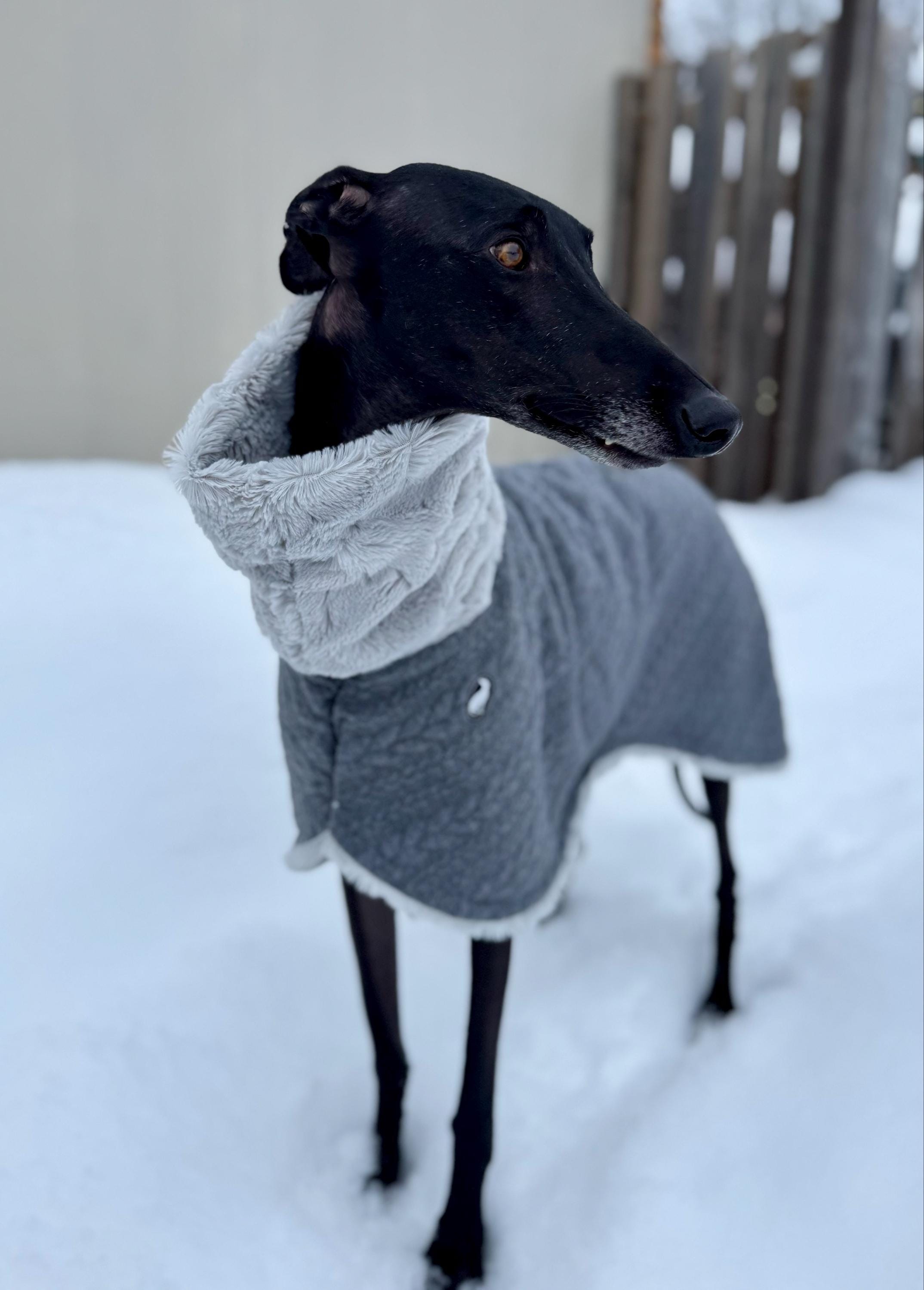 Manteau d'excellente qualité. J'ai demandé de le faire sur mesure pour mon petit levrier italien qui a un gabarit en dessous de la moyenne. Il est très doux, tiens chaud et est léger à porter. Ce qui est important pour mon chien qui pèse moins de 3kg. La couleur beige est vraiment très belle. Parfait en tout point.